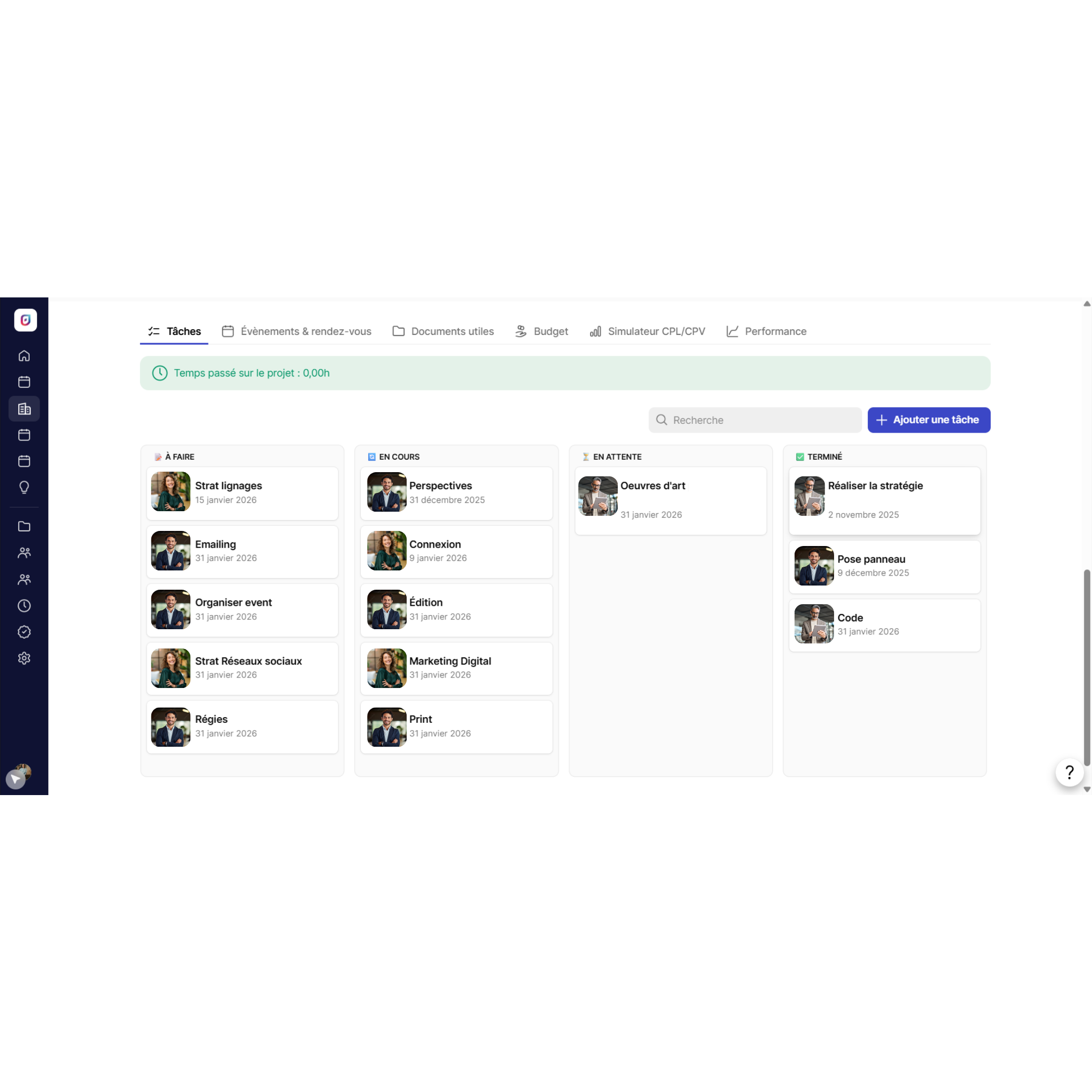Visualisation claire des dépenses par poste de coût. Pointage précis des heures passées par collaborateur. Alertes automatiques en cas de dépassement de budget.